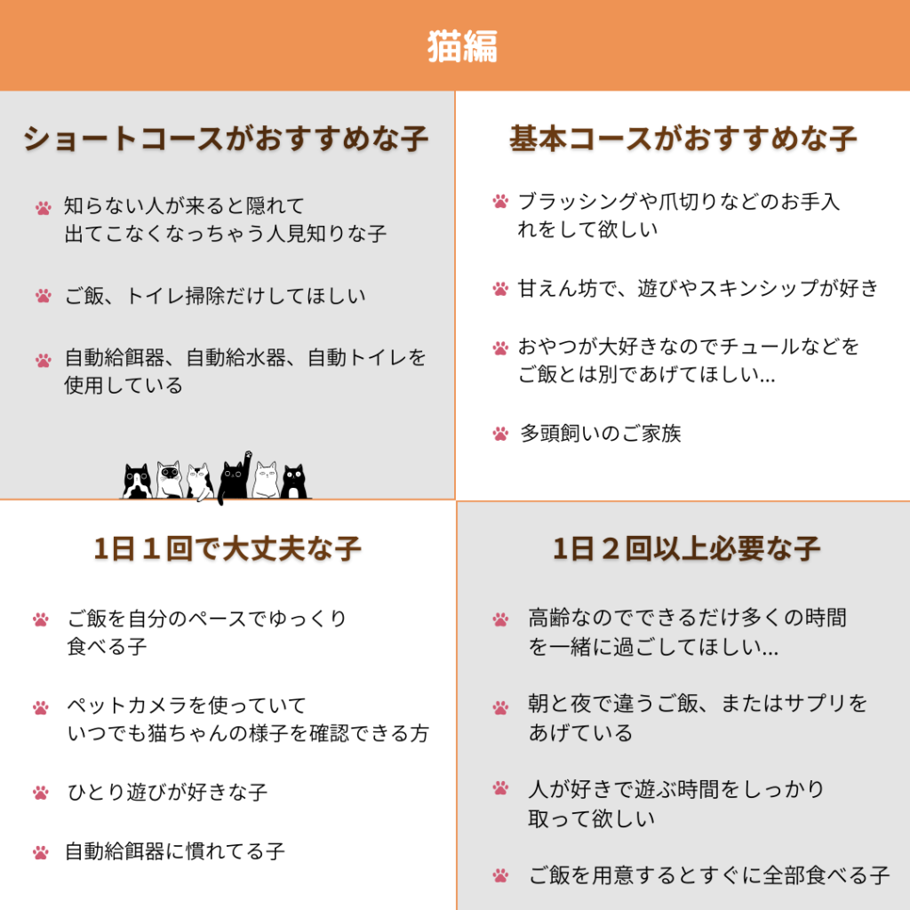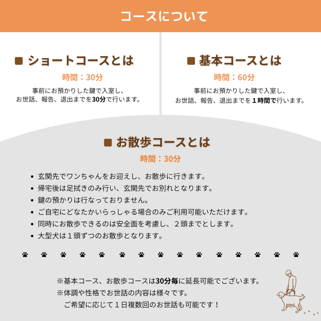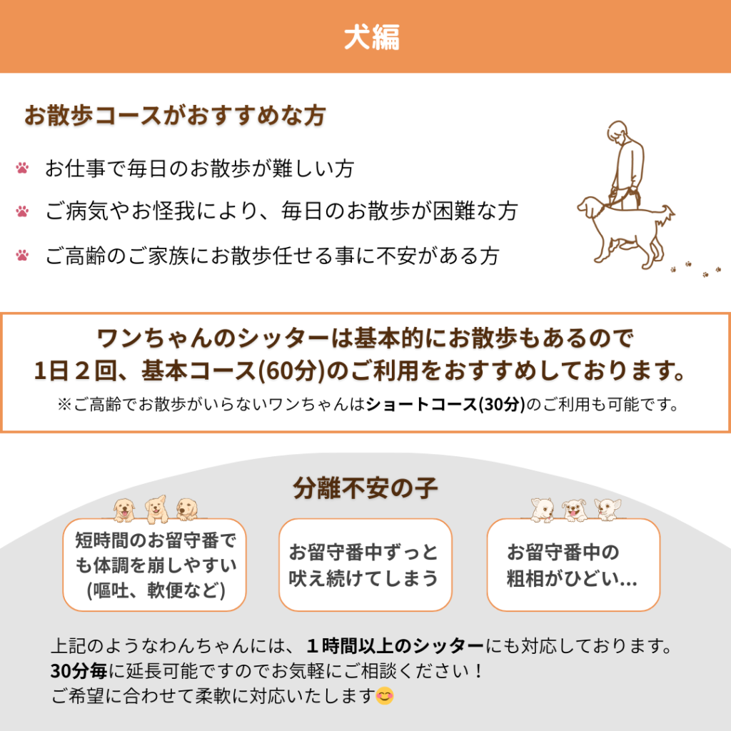 ペットシッター初めて利用される方、コースがややこしくてどれを選べば良いか分からないという意見をいただきました。以下で詳しく説明しております!